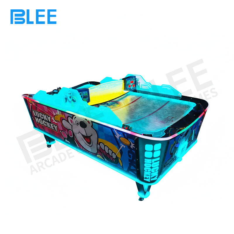 | Features | 1. Table top curved design, air flout, smooth game play atmosphere. 2. Unique light system, led special light bar in the surface of the frame. 3.Players can know each other score in time. Wind blow machine sound proof, maximum decrease the wind sound. |