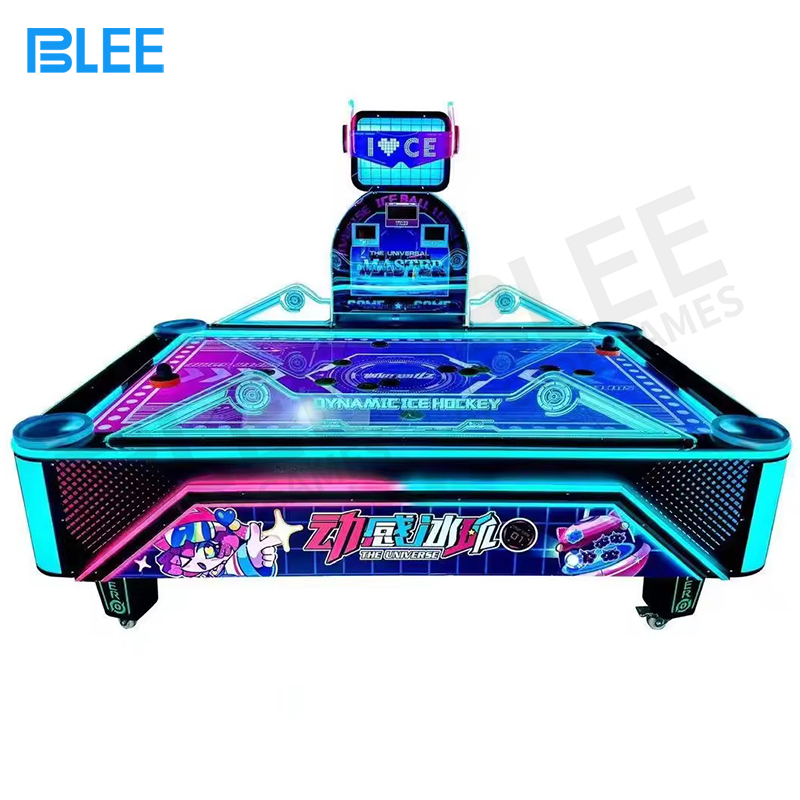 | Features | 1. Table top curved design, air flout, smooth game play atmosphere. 2. Unique light system, led special light bar in the surface of the frame. 3.Players can know each other score in time. Wind blow machine sound proof, maximum decrease the wind sound. |